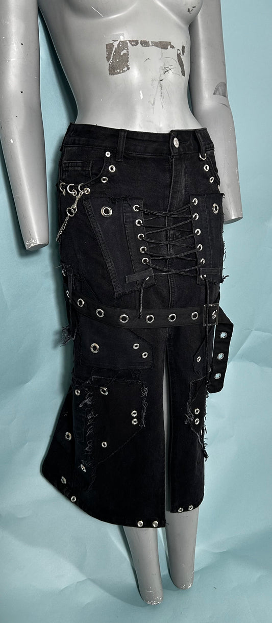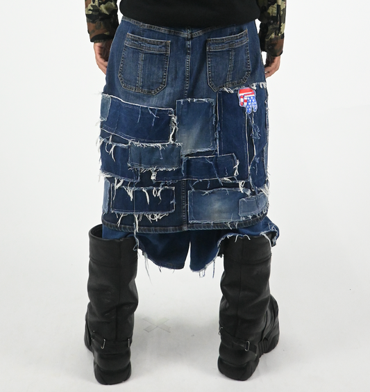 CHEETAH PATCHWORK SKIRT-MID LENGTH
