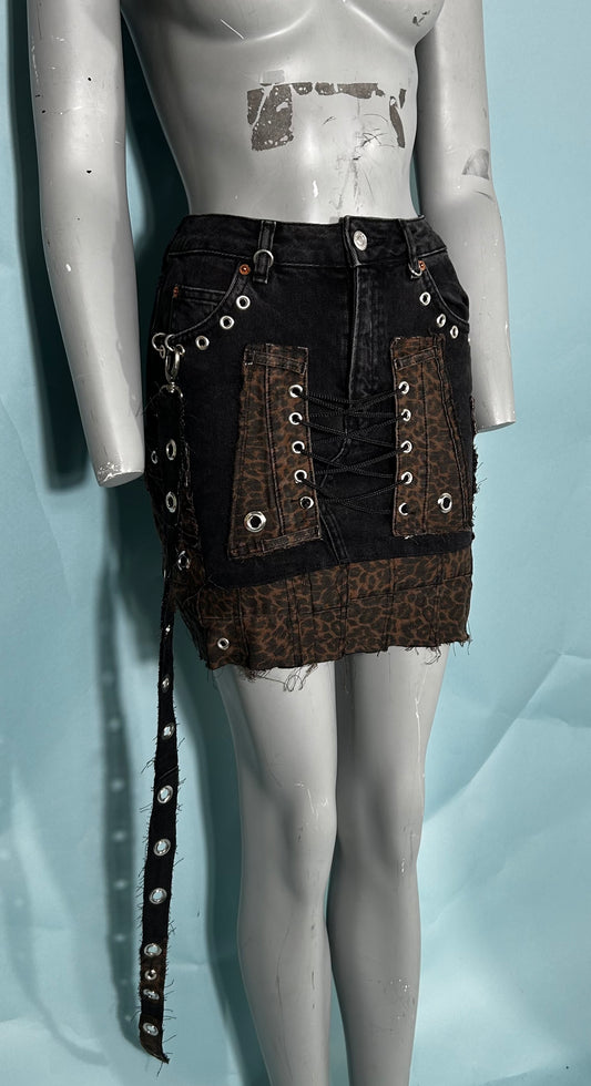 CHEETAH PATCHWORK SKIRT-MID LENGTH