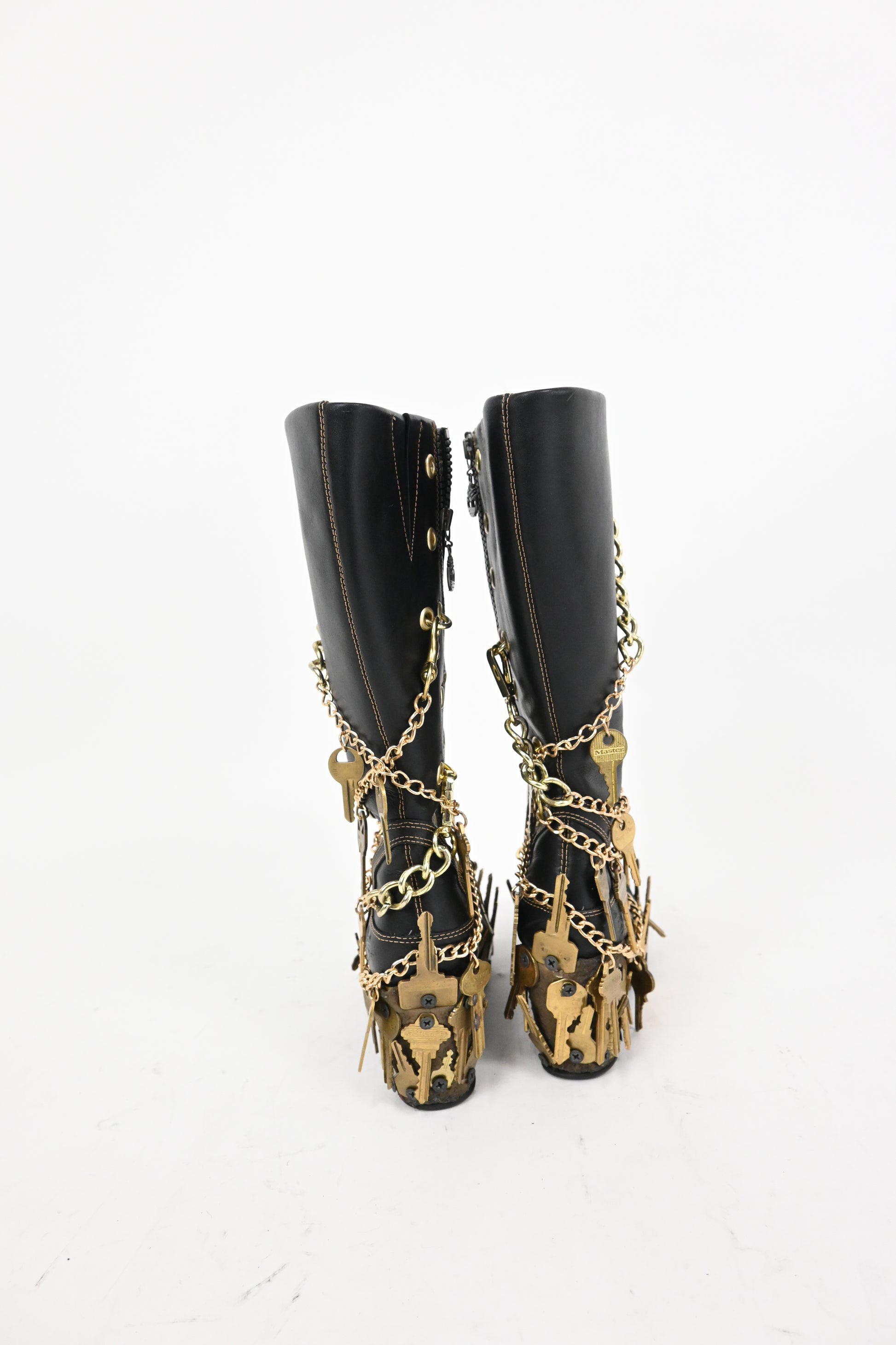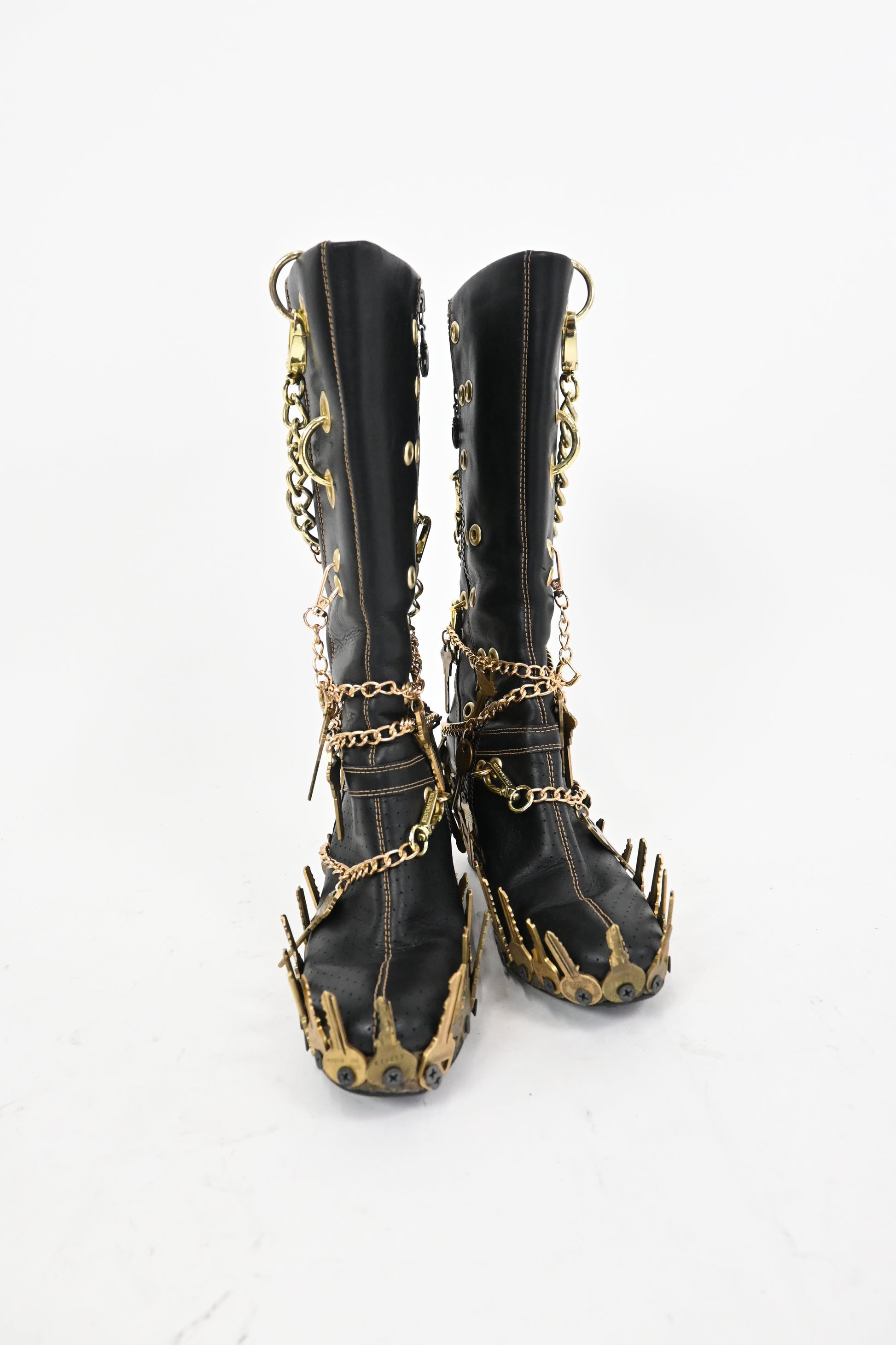 Timberland zip up boots with gold chains and hardware attached (front screws fragile)