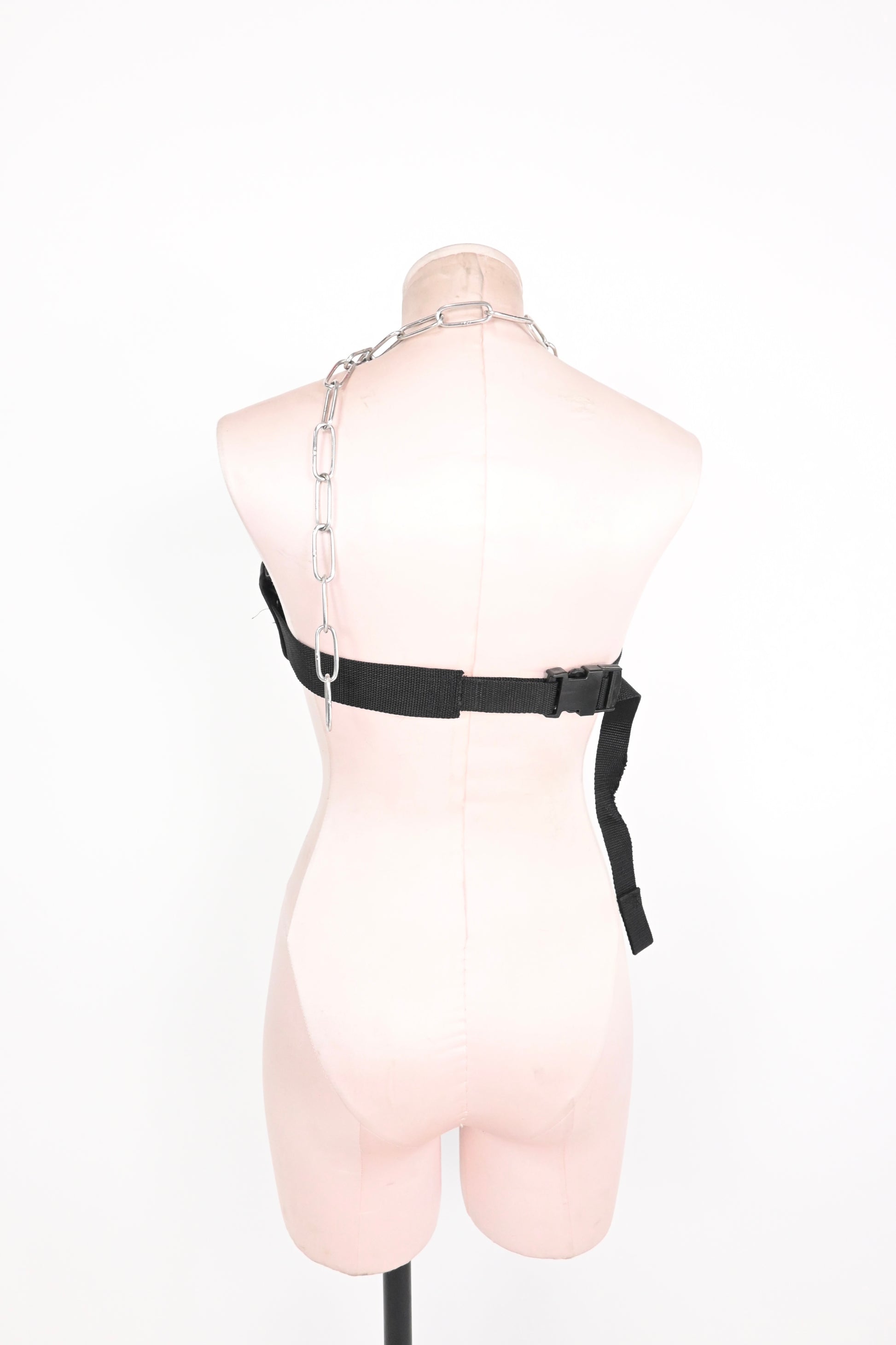 GLOVE BRA TOP WITH SILVER SPIKES AND ADJUSTABLE CHAIN AND BACK STRAP