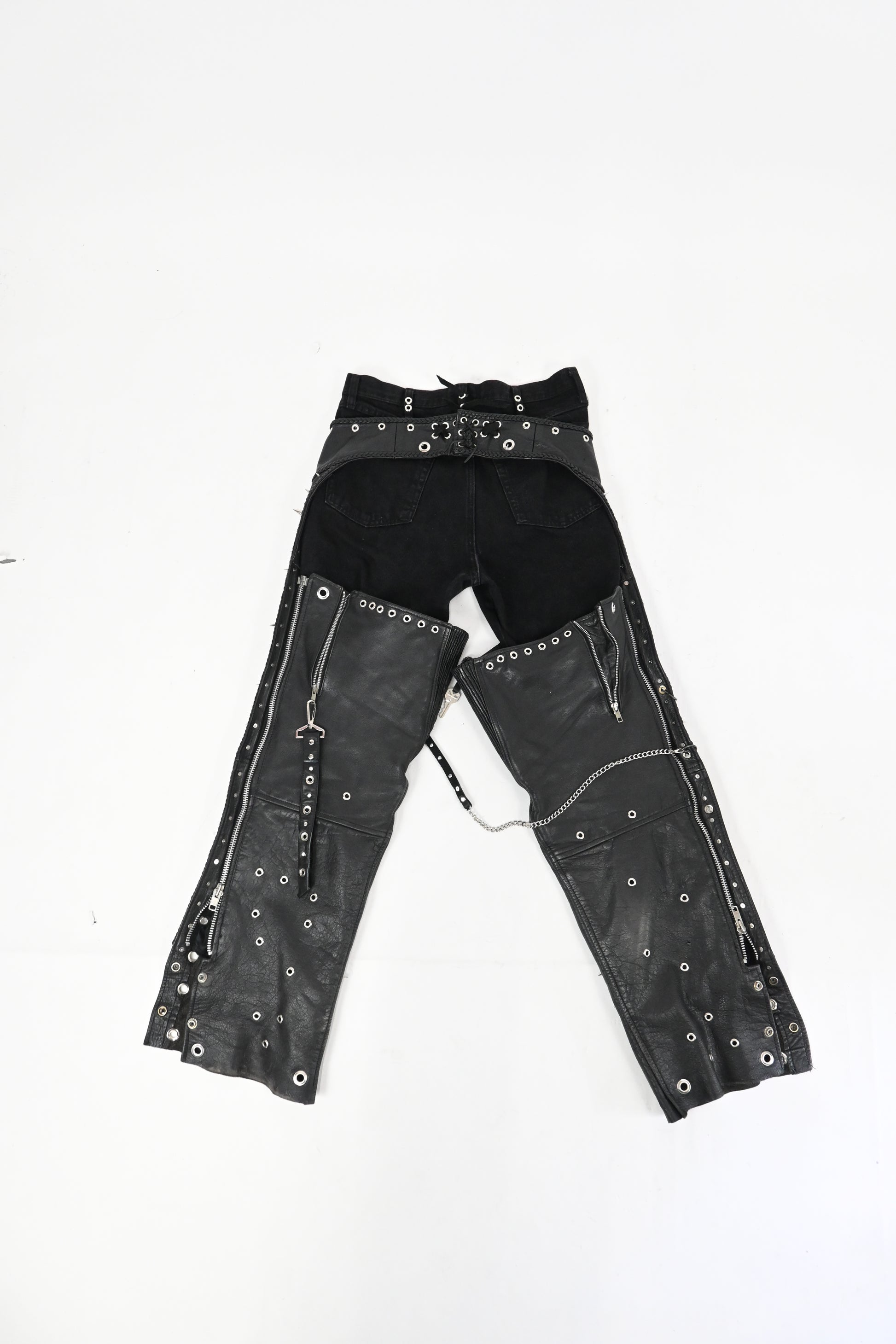 Spiked leather chaps w denim jeans attached(removable if you’d like to wear your own jeans underneath)